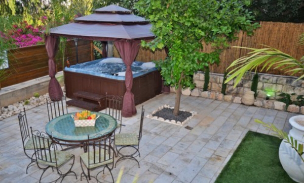 הסוויטות ממוזגות, בחצר הסוויטות פינת מנגל, בריכה מחוממת, ג'קוזי ספא וסאונה, ערסלים ופינות ישיבה.
