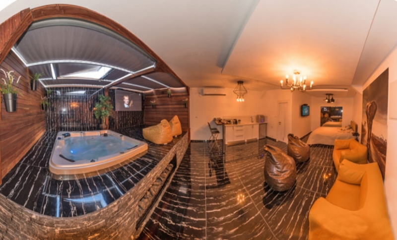 סוויטות BLACK הם חלום שמתגשם במקום אחד!! חדר שינה מרווח עם ג'קוזי ספא גדול אשר טמון ברצפה, לצדו קמין עצים לימי החורף הקרים, פינות יישבה, פופים מגניבים ותקרה זכוכית שמוסיפה יוקרה וחוויה בלתי רגילה.