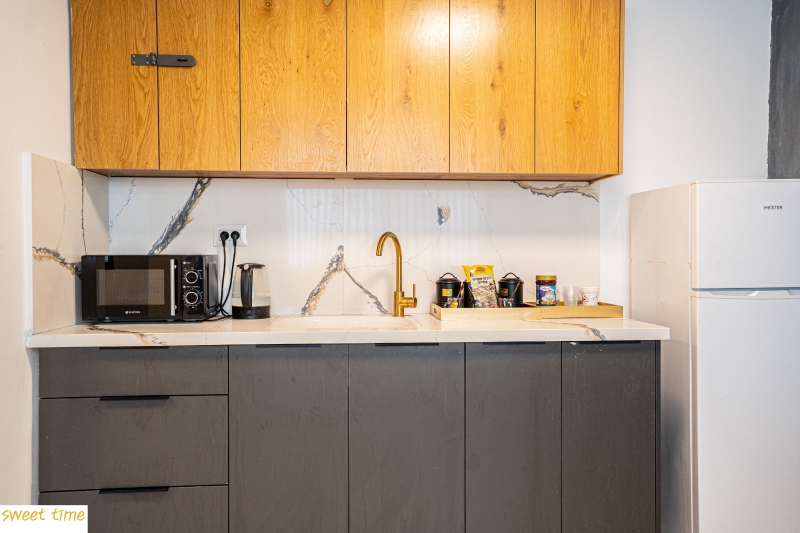 הסוויטה נקייה ומפנקת, מאובזרת בשלמות בכל מה שצריך לכמה שעות של פינוק או לילה רומנטי בשניים, עם חדר שינה זוגי רומנטי, מיטה זוגית מרווחת ונוחה, תאורה רומנטית, מיזוג אוויר, מטבחון עם פינת קפה מגוונת, מיקרוגל, מקרר, סלון מרווח, טלוויזיה חכמה עם יוטיוב ונטפליקס וחדר רחצה נקי המלווה במגבות גוף וסבונים.
